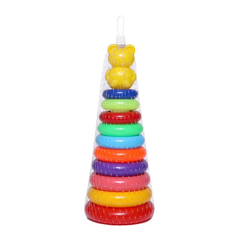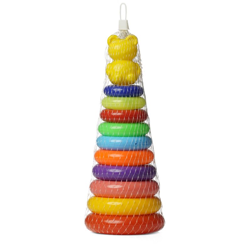 حلقه هوش خرسی متوسط از ده حلقه به رنگ‌ها و اندازه‌های مختلف، یک خرس کوچولو و یک پایه‌ی مخروطی تشکیل شده است. هدف این است که کودک با بازی و جستجوی ذهنی و از طریق آزمون و خطا با مفاهیم اندازه، تطبیق و دسته‌بندی آشنا شود. رنگ‌های درخشان حلقه‌ها به شناخت رنگ‌ها کمک می‌کند. برای شروع اصلاً مهم نیست که کودک ترتیب را رعایت کند، اما در نهایت کودک باید بتواند همه‌ی حلقه‌ها را به ترتیب بچیند و از این راه قدرت حل مسئله را در خود تقویت کند. حلقه هوش خرسی در دو اندازه‌ی کوچک و بزرگ هم تولید و عرضه می‌شود.