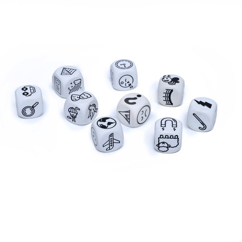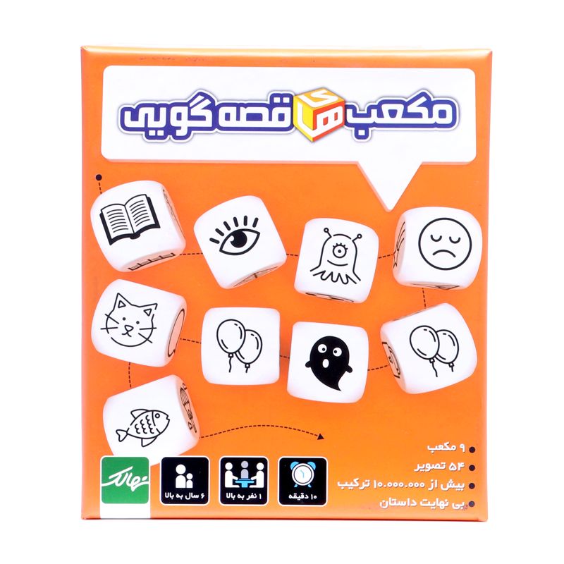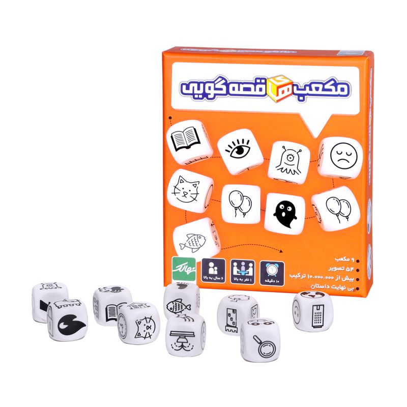 مکعبهای قصهگویی مجموعهای شامل ۹ تاس است که روی هر وجه از آنها تصویر متفاوتی نقش بسته است. با کمک این ۹ تاس و با ورد جادویی «یکی بود، یکی نبود …» دریچهای از دنیایی پر از تخیل و خلاقیت به روی شما گشوده میشود. با مکعبهای قصهگویی میتوان به روشهای بسیار گوناگونی بازی کرد و بر توانش زبانی، دایرهی واژگان، قدرت قصهگویی و بیان احساسات خود افزود. این بازی علاوه بر ایجاد فرصتی شاد و مفرح برای دورهمیهای خانوادگی، میتواند در کلاسهای انشاء، نقاشی و همچنین جلسات درمانی اختلالات گفتاری و عاطفی مورد استفاده قرار گیرد.