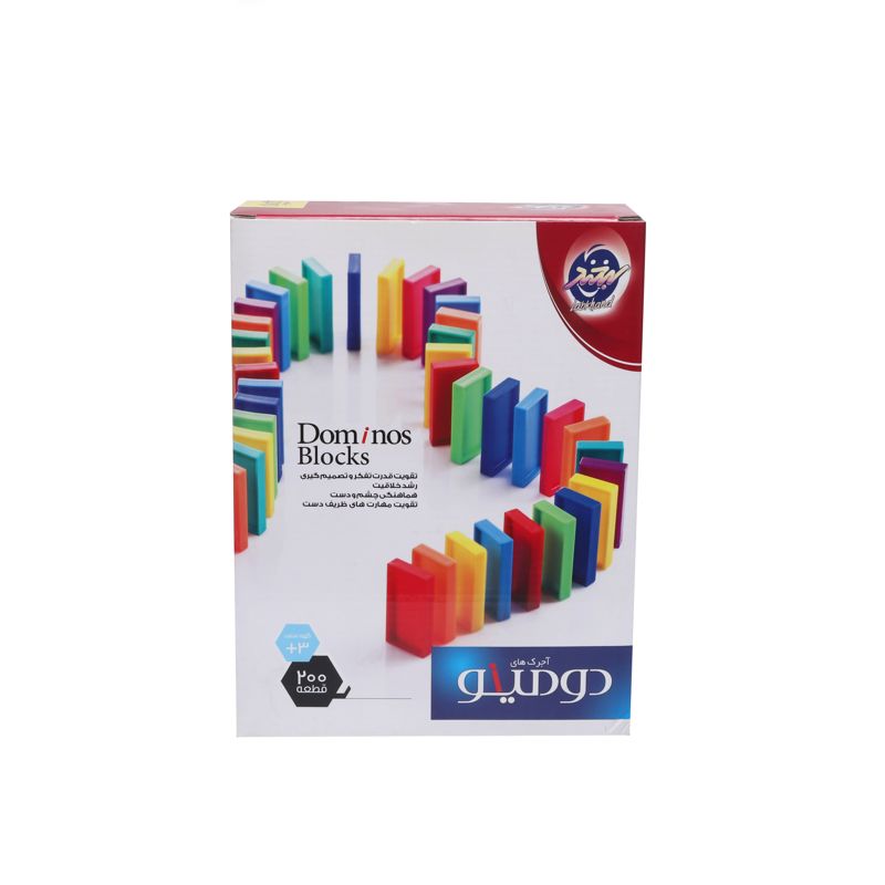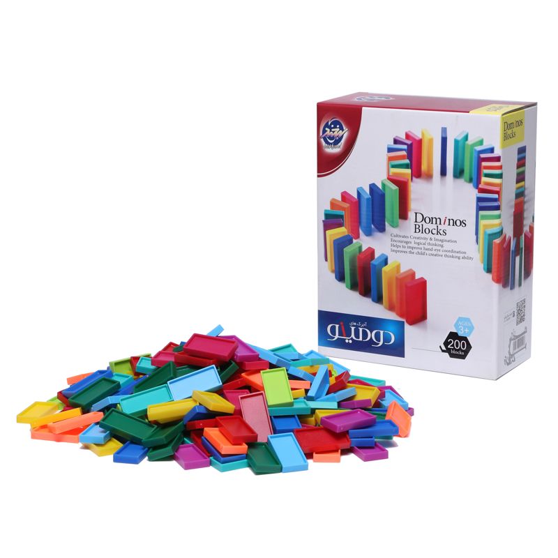 چیدن قطعات دومینو و در نهایت شاهد آن بودن که چگونه با فرو افتادن یکی بقیهی قطعات یکی بعد از دیگری زنجیروار فرو میافتند، از بازیها و تفریحات جذاب و در عین حال بسیار آموزنده برای همهی گروههای سنی است. دومینو ۲۰۰ قطعه لبخند، همانطور که از نامش پیداست، حاوی ۲۰۰ قطعه دومینوی پلاستیکی رنگارنگ است که میتوان با استفاده از آنها به صورت فردی یا گروهی چیدمانهای متنوعی ایجاد کرد و علاوه بر افزایش چشمگیر دقت و تمرکز و همچنین صبر و بردباری، بر روحیهی جمعی و حس همکاری در بین کودکان و نوجوانان افزود. دومینو در بستهبندی جعبهای ۱۰۰ قطعهای و به صورت فلهای در بستههای ۱۰۰۰ تایی نیز عرضه میشود.