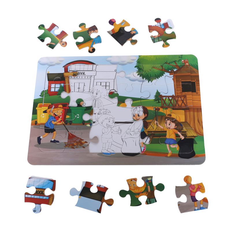دیدن تصاویری از کنار هم بودن کودکان در کنار هم، در حال بازی و تلاش و شادی، به خودی خود حس خوبی در کودکان ایجاد میکند. حال اگر این تصاویر به صورت پازلهای ۲۴ قطعهای باشند فواید بیشماری را در بر خواهند داشت. در واقع پازلها از مفیدترین وسایل بازی و آموزشی برای کودکان محسوب میشوند. پیدا کردن قطعات درست از طریق آزمون و خطا شاید اولین گامهای کودکان نوپا در فراگیری حل مسئله باشد. در عین حال برداشتن و جایگذاری قطعات کنار هم باعث میشود ماهیچههای ظریف دست تقویت شوند و هماهنگی بین چشم و دست افزایش یابد. حل کردن پازل نیاز به دقت و تمرکز و صبوری دارد؛ از این طریق کودکان تمرکز و صبر را میآموزند. پازلهای رنگآمیزی کودکانه سری دوستی در ۴ مدل تهیه شده است. زیر قطعات طرح کامل تصویر به صورت خطوط محیطی و بدون رنگ ارائه شده تا کودک راحتتر بتواند پازل را کامل کند. این امر ضمن تقویت اعتماد به نفس کودک، این فرصت را فراهم میسازد که کودکان بتوانند تصویر را به دلخواه خود رنگآمیزی کنند.
