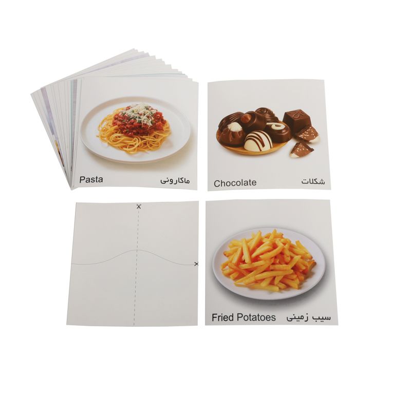 خوراکی‌ها از جمله موضوعات مورد علاقه‌ی کودکان هستند و به همین دلیل می‌توان از آن‌ها برای اهداف آموزشی استفاده کرد و مطمئن بود که توجه کودکان به خوبی جلب می‌شود. در کارت پازل آموزشی خوراکی‌ها برخی از خوردنی‌های معمولاً مورد توجه کودکان به دو زبان فارسی و انگلیسی معرفی شده‌اند. از این کارت‌ها می‌توان برای بازی‌های مختلف از جمله زبان‌آموزی استفاده کرد. در عین حال وجود خطوط نقطه‌چین در پشت کارت‌ها این امکان را فراهم می‌کند که آن‌ها را به دو یا چهار تکه قیچی کرد و از آن‌ها پازل ساخت. حل پازل به افزایش قدرت حل مسئله کمک می‌کند.
