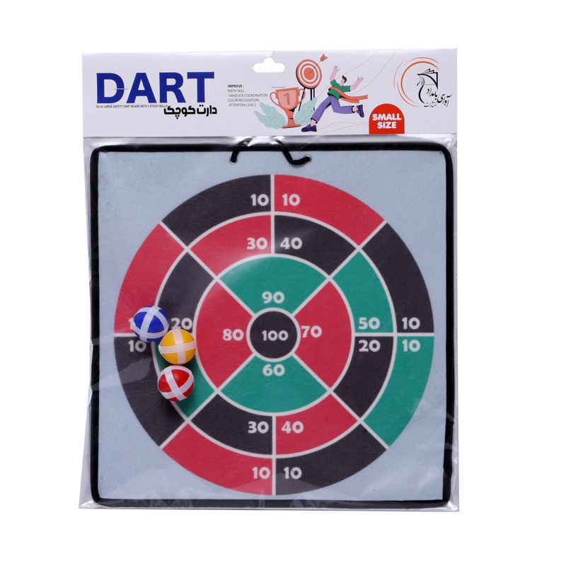 وقتی دارت بازی می‌کنیم در واقع بزرگ‌ترین بخش مغز را به کار می‌گیریم که کنترل حرکت‌های ارادی ماهیچه‌ها و تفکر را به عهده دارد. به همین دلیل بازی دارت نه تنها هماهنگی بین چشم و دست بلکه هماهنگی جسمی و ذهنی کل بدن را تقویت می‌کند. در عین حال تمرکز برای زدن به هدف هم دقت و تمرکز را افزایش می‌دهد و هم به دلیل اینکه به هیچ چیز دیگری جز نشانه‌گیری فکر نمی‌کنیم، باعث کاهش استرس می‌شود. دارت در دو اندازه‌ی کوچک، به شکل مربع و در اندازه‌ی ۳۴×۳۴ سانتیمتر و اندازه‌ی بزرگ، به شکل دایره و به قطر ۴۳ سانتیمتر، هر کدام در دو طرح کلاسیک و فانتزی همراه با ۳ توپ چسبونکی عرضه می‌شود و امکان یک بازی هیجان‌انگیز و کاملاً ایمن را برای کودکان فراهم می‌سازد.