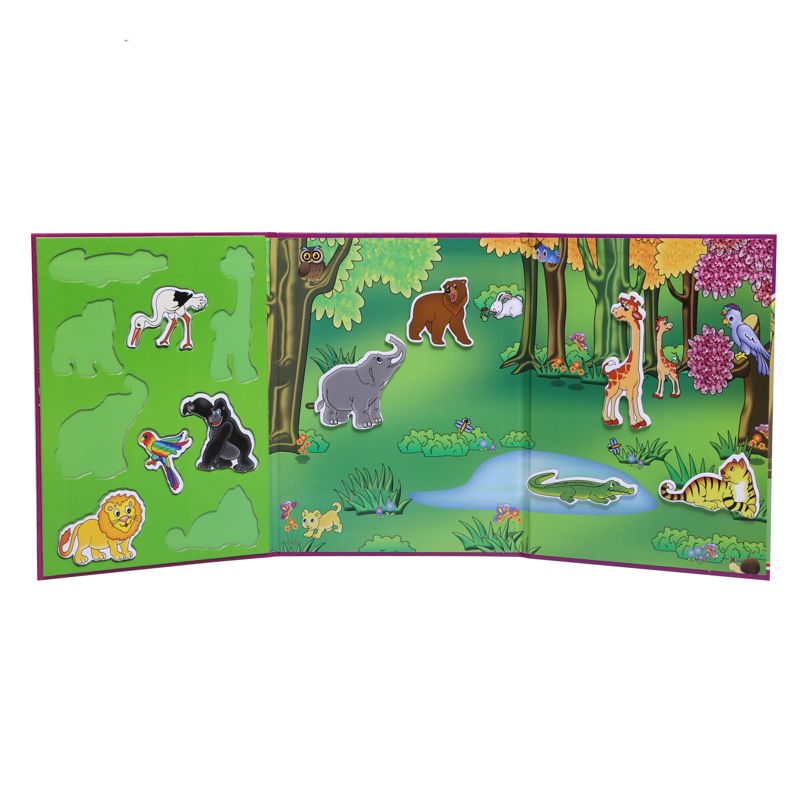 در بازی با جورچین کتابی آهنربایی حیوانات جنگل میتوان کودکان را هنگام قرار دادن اشکال آهنربایی مختلف در محل مناسب، با نام و ویژگیهای هر حیوان آشنا کرد. در عین حال کودکان میتوانند با چیدمانهای مختلف حیوانات روی صفحه به داستانسرایی بپردازند. آشنایی با حیوانات و کسب اطلاعات در مورد آنها، افزایش هوش کلامی به هنگام گفتگو در مورد حیوانات، هماهنگی چشم و دست، افزایش قدرت تخیل و گسترش دایرهی واژگان از جمله اهداف آموزشی این وسیله به شمار میرود. این بازی برای گروه سنی 3 سال مناسب است.
