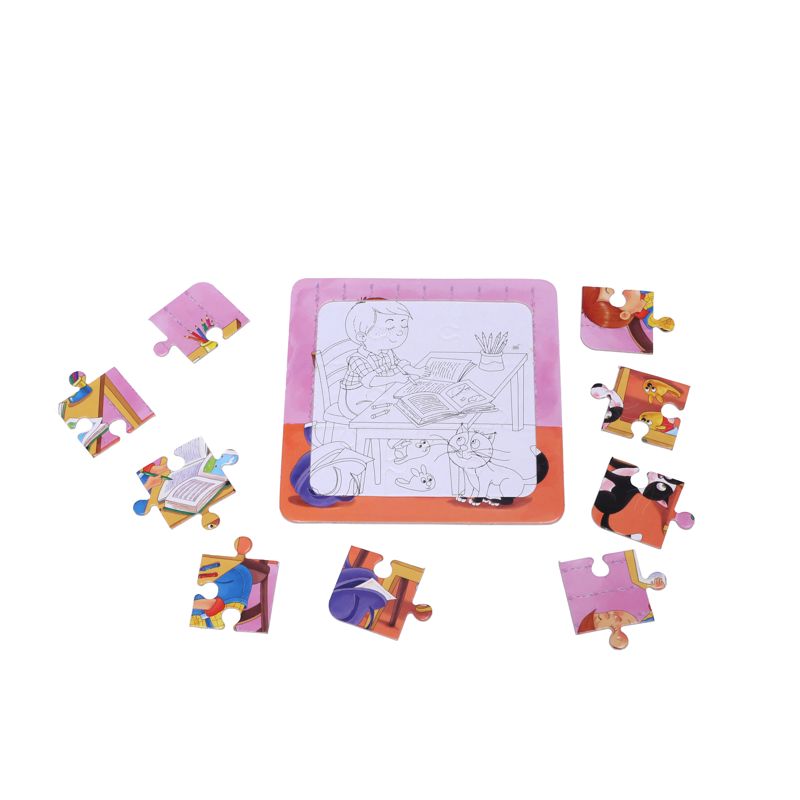 پازلها یا جورچینها از آن دسته وسایل سرگرمی هستند که علاوه بر فواید زیادی که برای آنها برمیشمارند، طیف وسیعی از گروههای سنی را هم در بر میگیرند. نکتهی مهم در انتخاب پازل برای فرد تعداد قطعات و اندازهی قطعات آن است. هر یک از پازلهای پسر و پیشی دارای ۹ قطعه است و برای کودکانی مناسب است که قبلاً پازلهای دو قطعهای، چهار قطعهای و یا شش قطعهای را به راحتی انجام داده باشند. هر پازل نشانگر یکی از فعالیتهای روزمرهای است که کودکان انجام میدهند، مثل غذا خوردن، بازی کردن، حمام کردن و غیره. هنگام درست کردن پازل میتوان در مورد هر فعالیت با کودکان گفتگو و مواردی که باید رعایت شود را گوشزد کرد.