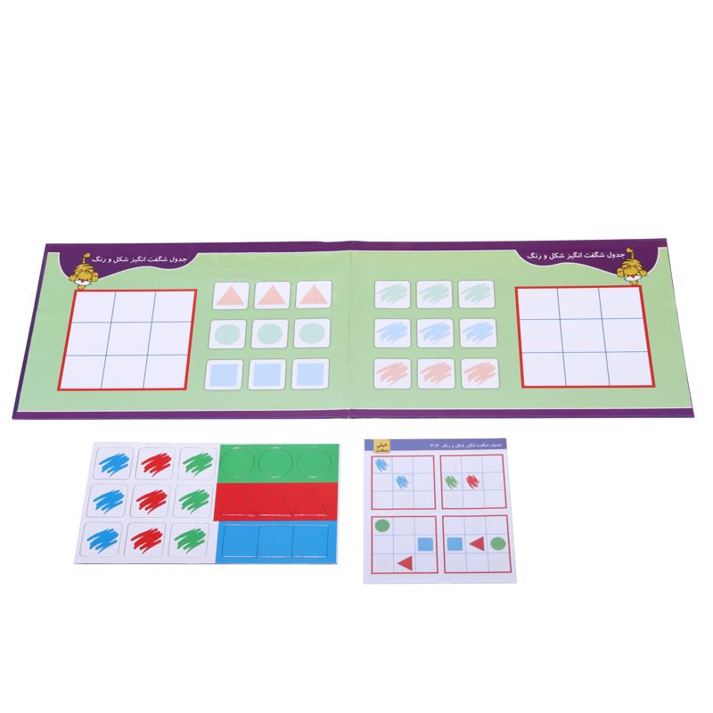 جدول شگفتانگیز شکل و رنگ وسیلهای بسیار مناسب برای شروع درک انواع جدولهای سودوکو است که در کتابهای ریاضی اول و دوم دبستان از آنها استفاده شده است. در این جدول از قطعات مغناطیسی استفاده شده است که جابجا کردن آنها به جای کشیدن و رنگ کردن برای کودکان بسیار راحتتر است. جدول شگفتانگیز شکل و رنگ در دو مدل ۳×۳ و ۴×۴ عرضه میشود تا کودکان بتوانند با سطوح مختلف تمرینها را انجام دهند. همراه با هر مدل دفترچهای شامل تعدادی معما در چهار سطح آسان، متوسط، سخت و خیلی سخت ارائه شده است و هر معما تنها یک پاسخ دارد.