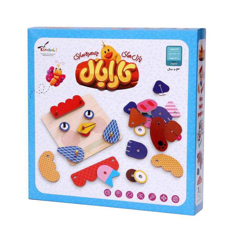 با یک صفحه که روی آن پایه‌های نرم و انعطاف‌پذیر نصب شده است و ۲۷ قطعه از اشکال رنگارنگ، فرصتی بی‌نظیر برای کودک فراهم می‌شود تا قوه‌ی تخیل خود را به کار بیندازد و با ترکیب این قطعات بر روی صفحه چهره‌های گوناگونی از حیوانات را خلق کند و بر خلاقیت خود بیفزاید. به منظور دادن ایده‌های اولیه ۳۰ نمونه‌ی جالب از چهره‌های حیوانات مختلف روی کارت چاپ شده است؛ اما فراموش نکنیم که خلاقیت کودکان هیچ محدودیتی ندارد.