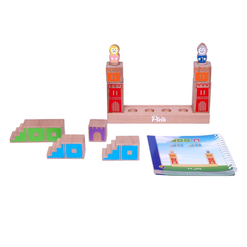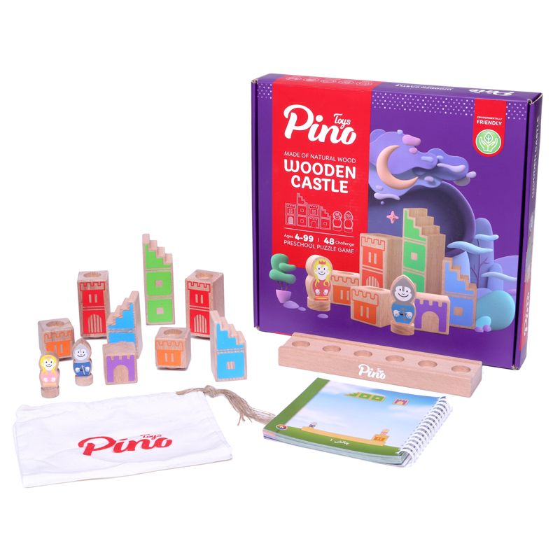 در این بازی معمایی جذاب، کودکان قطعات را با تفکر منطقی و استدلال یکی یکی میچینند تا شوالیه را به شاهزاده خانم برسانند. بازی شامل ۴۸ معمای سه بعدی مختلف است که از آسان به سخت شمارهگذاری شدهاند. قطعات همگی از چوب طبیعی و رنگهای بیخطر ساخته شدهاند و ضمن ایجاد حس خوب بازی با چوب، از ایمنی کامل برای کودکان برخوردار هستند. بازی فکری قلعه چوبی دقت و تمرکز و اعتماد به نفس را در کودکان افزایش میدهد و مهارت حل مسئله و توانایی تصمیمگیری را در آنان پرورش میدهد.