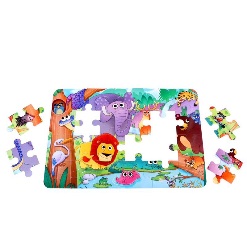 پازل‌ها از جمله بازی‌هایی هستند که علاوه بر سرگرم کردن کودکان مهارت‌های بسیاری را در آنان تقویت می‌کنند و از جمله آن‌ها را با جهانی که در آن زندگی می‌کنند، آشنا می‌سازند. پازل بزرگ در جنگل چه خبر یک پازل با ۲۴ قطعه بزرگ است که در نهایت یک تابلوی ۷۰×۵۰ سانتیمتری از حیوانات مختلف و متنوع جنگل می‌سازد. کیفیت بالای قطعات و همچنین طراحی و رنگ‌آمیزی بسیار زیبای این پازل از مزیت‌های آن به شمار می‌رود.