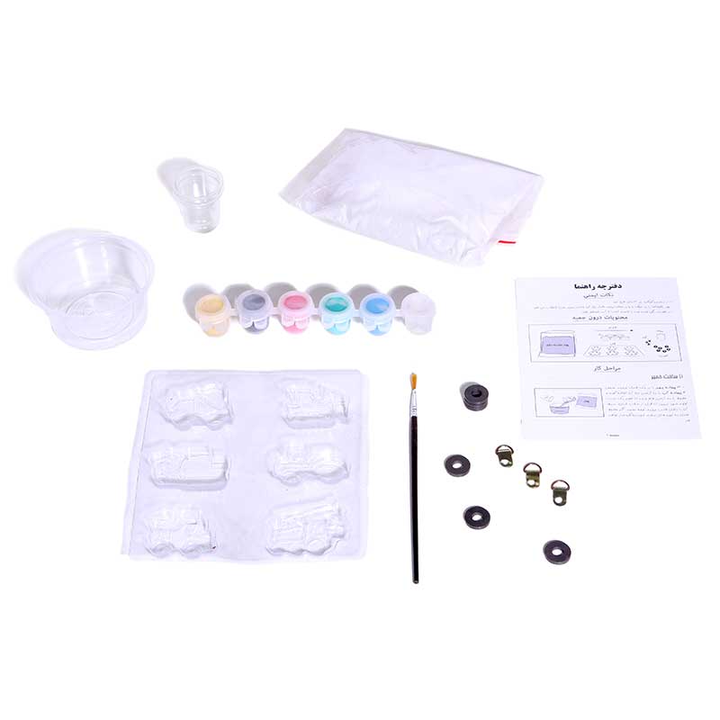 ساختن ماشین‌های تزئینی کوچک، برای کودکان و بخصوص پسربچه‌ها، تجربه‌ی بی‌نظیری است که می‌تواند در ایجاد اعتماد به نفس در آنان نقش قابل توجهی داشته باشد. مجموعه‌ی قالب‌گیری و رنگ‌آمیزی شهر کامیون‌ها با ارائه‌ی تمامی وسایل لازم فرصت چنین تجربه‌ی دلنشینی را فراهم می‌کند. این مجموعه شامل پودر مجسمه‌سازی، دو پیمانه‌، یک کاسه برای درست کردن خمیر، قالب برای ۶ مدل مختلف ماشین راهسازی، شش رنگ اصلی گواش، یک قلم مو، سه قلاب آویز و شش قطعه آهنربای حلقه‌ای و دفترچه‌ی راهنماست. کودکان می‌توانند از ۵ سالگی، تحت نظارت بزرگترها، خمیر مجسمه‌سازی را آماده و قالب‌گیری و پس از اضافه کردن آویز یا آهنربا، در نهایت آن‌ها را با خلاقیت خود رنگ‌آمیزی کنند. از ماکت‌های آماده شده می‌توان برای آویزان کردن یا تزئین روی یخچال یا هر سطح فلزی دیگر استفاده کرد. در عین حال می‌توان آن‌ها را به صورت کولاژ در نقاشی‌ها به کار برد و تابلوهای برجسته خلق کرد.