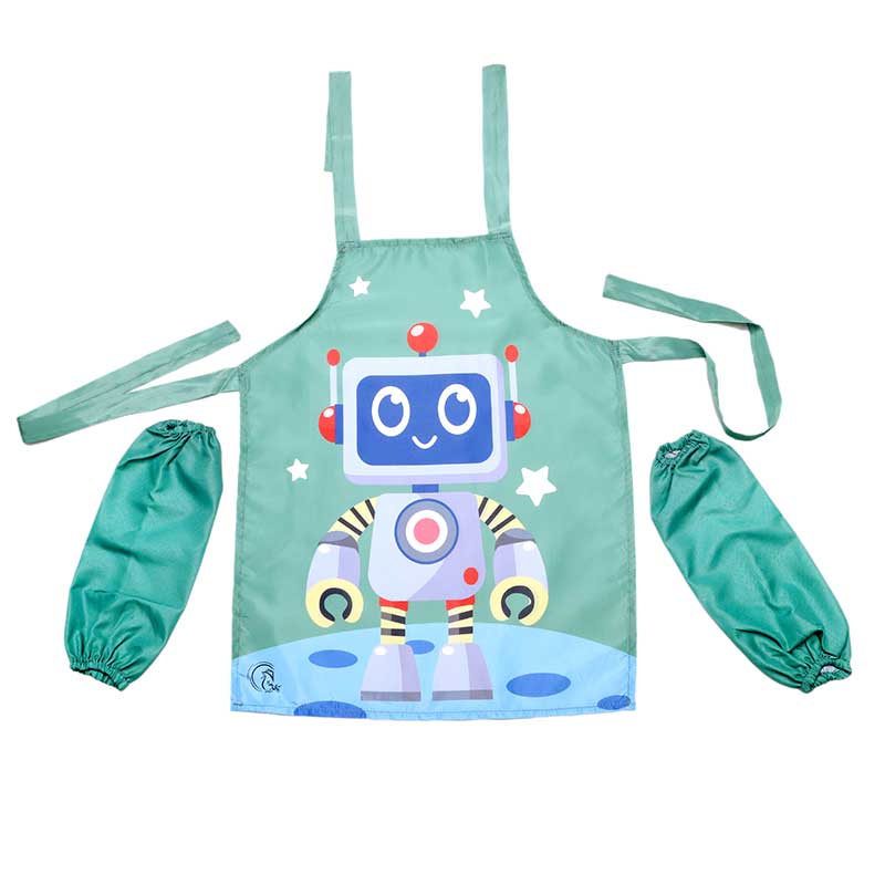پیشبند مهد کودک مدل ربات تولید شده است تا کودکان بتوانند با خیال راحت و بدون دغدغهی والدین از کثیف شدن لباسهایشان، به هر فعالیتی که مایل هستند بپردازند. این پیشبند که دارای آستین کشدار جداگانه هم هست نقاشی، گِل بازی، خمیربازی، آشپزی، باغبانی و هر فعالیت دیگری را برای کودکان لذتبخشتر میکند. جنس این روپوش از پارچهی شمعی و ضد آب است و کودکان میتوانند از آن در خانه، مهد کودک و دبستان استفاده کنند.