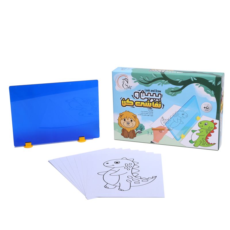 بسیاری از کودکان به دلیل عدم درک چگونگی انتقال اشکال سه بعدی بر روی سطح کاغذ و تبدیل آنها به اشکال دو بعدی، به سادگی طرف نقاشی نمیروند. ببین و نقاشی کن با ساده کردن طراحی خطوط محیطی روند درک این تبدیل را تسریع میکند. این وسیله شامل یک صفحهی طلقی است که روی دو پایهی کوچک سوار میشود. روش کار به این صورت است که یک تصویر آماده یا حتی یک شیء را در یک طرف طلق قرار میدهیم و یک کاغذ سفید را در طرف دیگر. با توجه به انعکاس تصویر روی طلق میتوان خطوط محیطی آن را روی کاغذ کشید. همراه با این وسیله ۱۶ طرح بسیار ساده عرضه شده است که برای شروع میتوان از آنها استفاده کرد.
