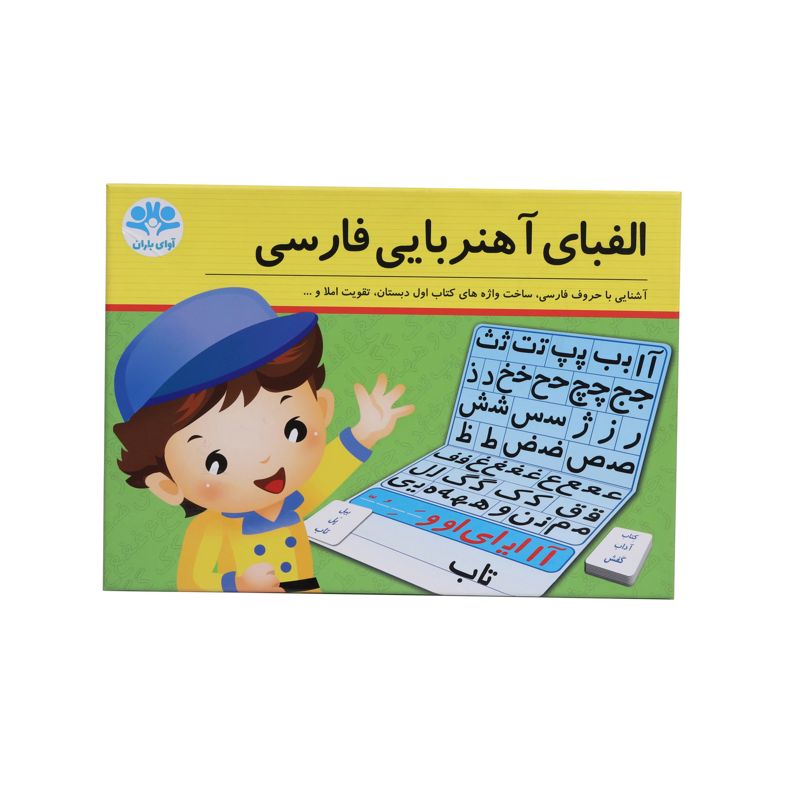 الفبای آهنربایی فارسی در بر گیرندهی تمامی اَشکال حروف الفبای فارسی به صورت مغناطیسی، یک تختهی دو طرفه و کارتهای کلمات مورد استفاده در سال اول ابتدایی است. در این مجموعه از هر شکل حروف چندین قطعه وجود دارد بنابراین کودک میتواند با ترکیب این قطعات هر کلمه یا حتی جملهای را بسازد. علائم مصوت نیز با رنگ قرمز تولید شده است تا تشخیص آنها راحتتر باشد. از پشت تخته هم میتوان به صورت یک تخته وایتبرد استفاده کرد. با توجه به اینکه استفاده از ابزار در تعمیق یادگیری بسیار مؤثر است، الفبای آهنربایی فارسی میتواند محصولی بسیار مفید برای یادگیری عمیقتر شکل درست نوشتاری کلمات و دیکته باشد.