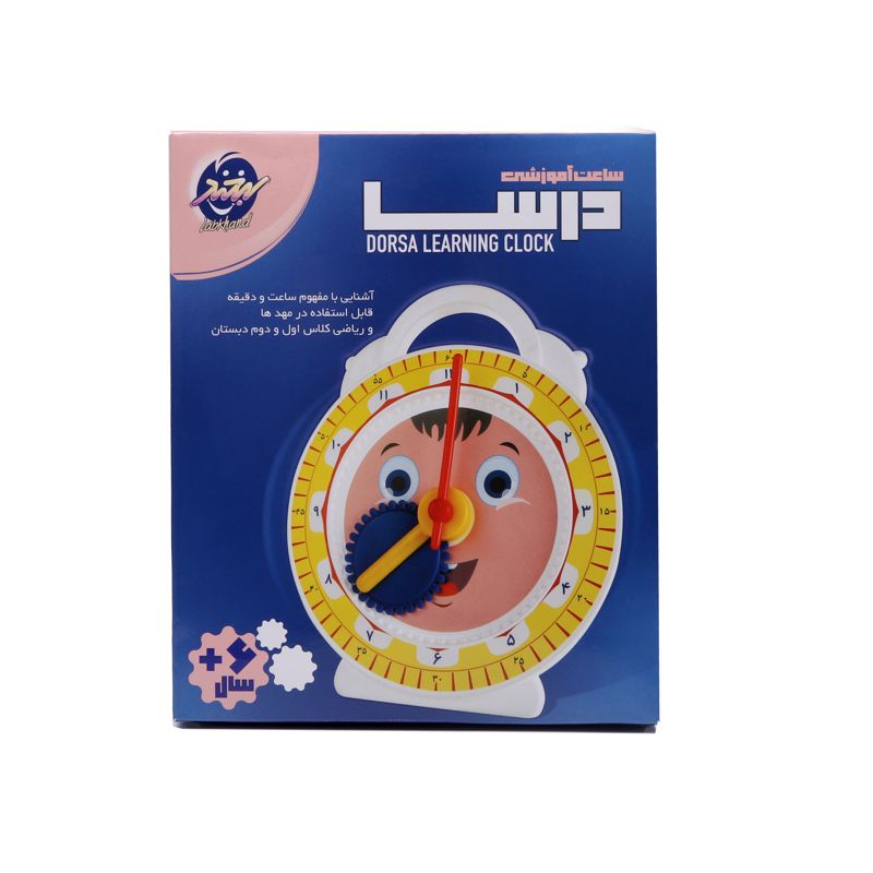 در این مجموعه یک عدد ساعت پلاستیکی پایهدار همراه با عقربههای متحرک و اهرم گردش عقربهها ارائه شده است. هدف اصلی از این محصول آموزش ساعت و مفهوم زمان به دانشآموزان مقطع دبستان است. با استفاده از این ساعت دانشآموزان به راحتی میتوانند مفهوم ساعت و دقیقه را بیاموزند. چرخ دنده بزرگ روی صفحهی این ساعت این امکان را برای دانشآموزان فراهم میکند تا با یک دور کامل چرخاندن عقربه دقیقه شمار، عقربه ساعت شمار یک ساعت جابجا شود. این وسیله میتواند یکی از ابزارهای آموزشی بسیار مؤثر در سر کلاس باشد.
