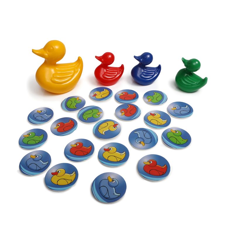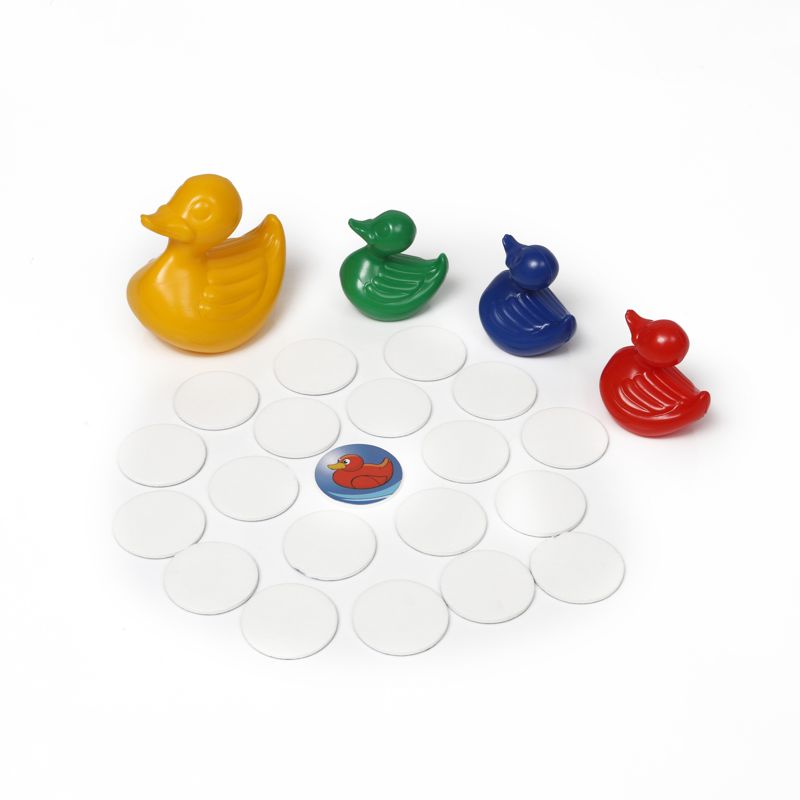 این بازی شامل یک مرغابی مادر، سه عدد جوجه مرغابی و ۲۰ پولک فومی است. با این مجموعه میتوان بینهایت بازیهای قصهگویی انجام داد، در عین حال با کمک پولکهای فومی میتوان علاوه بر انجام روشی که در راهنما آمده است، بازیهای متنوعی را برای تقویت حافظه و افزایش دقت و تمرکز کودکان ابداع کرد. در روش اصلی مرغابیها را پشت سر هم میچینیم و پولکها را یکی یکی رو میکنیم، اگر رنگ پولک با رنگ مرغابی یکسان بود، مرغابی را به اول صف میآوریم. شناخت رنگها و سپری کردن اوقاتی خوش با کودکان از دیگر اهداف این بازی به شمار میرود.