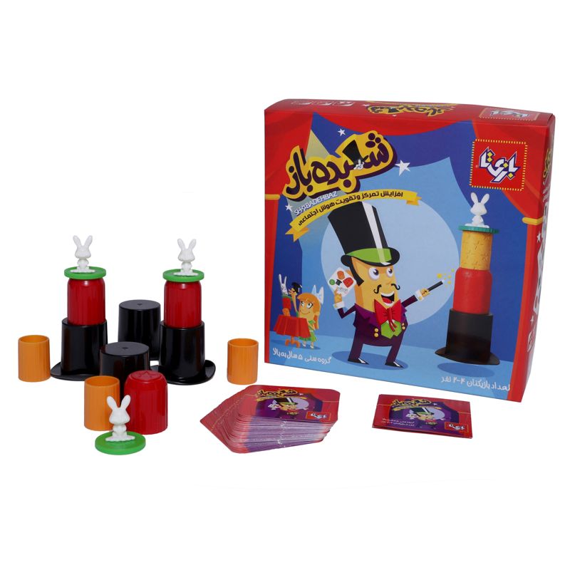 این بازی که با هدف تقویت دقت و تمرکز، چابکی دست و افزایش هوش اجتماعی کودکان طراحی شده، دارای تعدادی وسایل شعبدهبازی شامل کلاه، فنجان، استوانه، سکه و خرگوش است. روش بازی به این صورت است که به هر یک از بازیکنان یک دست وسایل شعبدهبازی داده میشود. کارتهای بازی نیز بُر خورده، به پشت در وسط بازی قرار میگیرد. یکی از بازیکنان یکی از کارتها را رو میکند و همهی بازیکنان بایدبه سرعت وسایل خود را طبق کارت طوری روی هم بچینند که: وسایل رنگی روی کارت دیده شوند، وسیلهی خاکستری دیده نشود و از وسیلهای که در کارت نیست، در چیدمان استفاده نشود.کسی که زودتر از همه وسایلش را طبق کارت بچیند، کارت را به عنوان امتیاز برای خود برمیدارد و کارت بعدی را رو میکند.