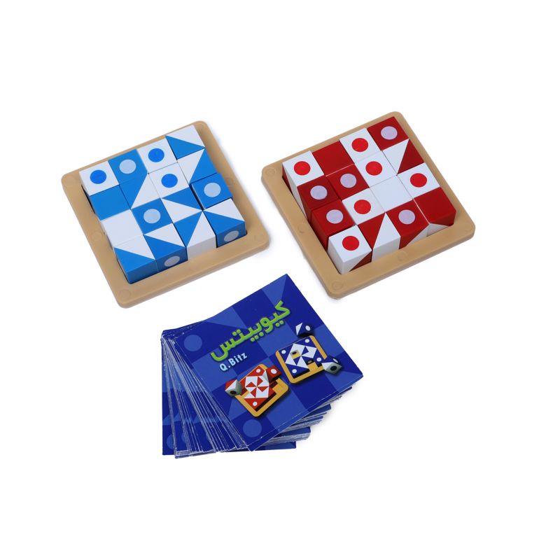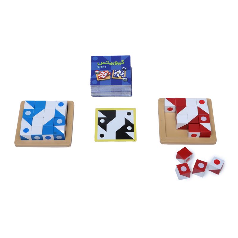 کیوبیتس یک بازی فکری است که هوش فضایی و دیداری شما را بشدت بالا میبرد، در این بازی سرعت عمل و حافظه شما به چالش کشیده می شود،هر دور بازی با یک روش متفاوت و کاملا متمایز انجام میشود، در دور اول ازروی کارت ،برد را میچینیم ، در دور دوم هر بار مکعب هارا مثل تاس میریزید و سعی میکنید شکل را کامل کنید اما در دور سوم یک بار کارت را دیده و با توجه به حافظه خود آن را روی برد ترسیم میکنید. این بازی دارای 105 کارت معمای شماره گذاری شده است.