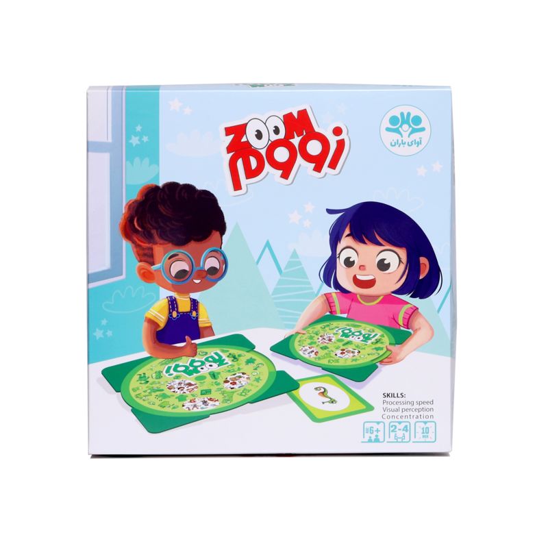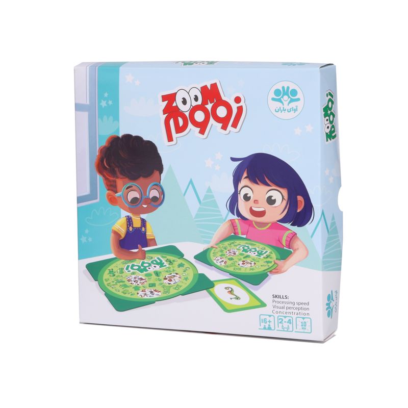 زووم یک بازی مبتنی بر تیزبینی و سرعت تفکر است. در این بازی به هر یک از بازیکنان یک گردونه داده میشود و هر بار یکی از کارتها رو میشود. بازیکنان باید هر چه سریعتر با چرخاندن گردونهی خود تصویر یا تصاویر روی کارت را روی گردونهی خود پیدا کنند. هر کس زودتر تصویر یا تصاویر را پیدا کند، کارت را برای خود برمیدارد. کسی که چشم تیزبینتری داشته باشد، کارت بیشتری جمع خواهد کرد. از دیگر مواردی که این بازی به تقویت آن کمک میکند، میتوان به هوش هیجانی و قدرت تطبیق اشاره کرد. بازی را به دو روش پیدا کردن یک تصویر یا دو تصویر انجام داد.