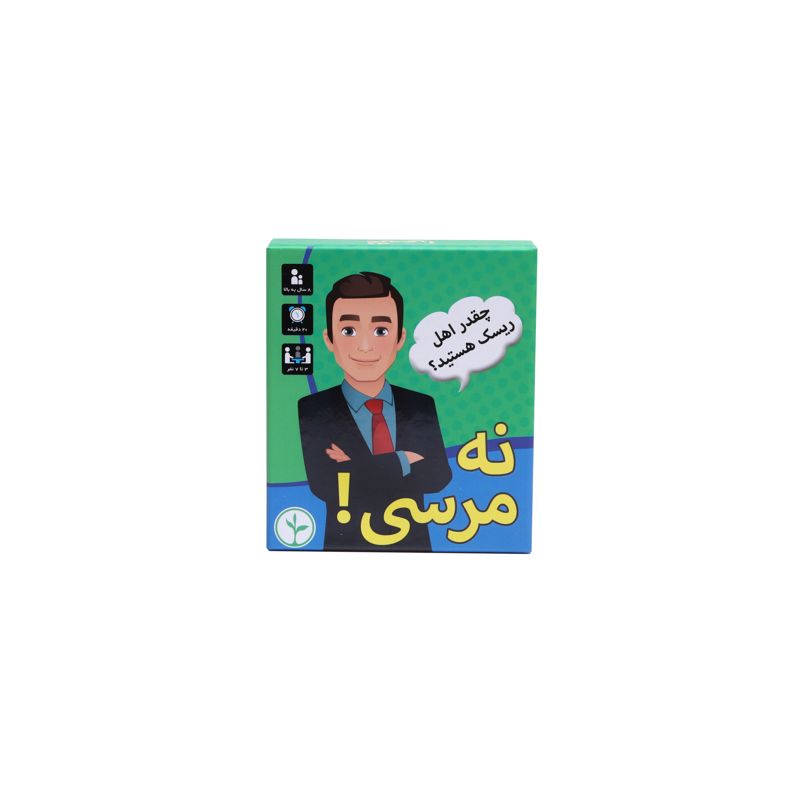 با وجود قوانین بسیار ساده، نه مرسی یک بازی گروهی بسیار جذاب است که میتواند شما را به شدت درگیر بازی کند! در این بازی هر بار یک کارت رو میشود که روی آن عددی از ۳ تا ۳۵ نوشته شده است. بازیکنی که نوبتش است یا آن را برمیدارد یا با پرداخت یک ژتون نوبت را به نفر بعدی میدهد. شمارههای روی کارت امتیاز منفی هستند اما اگر بتوانید اعداد را ردیف کنید، تنها پایینترین رقم امتیاز منفی آن ردیف حساب میشود. این بازی قدرت ریسک را بالا میبرد.