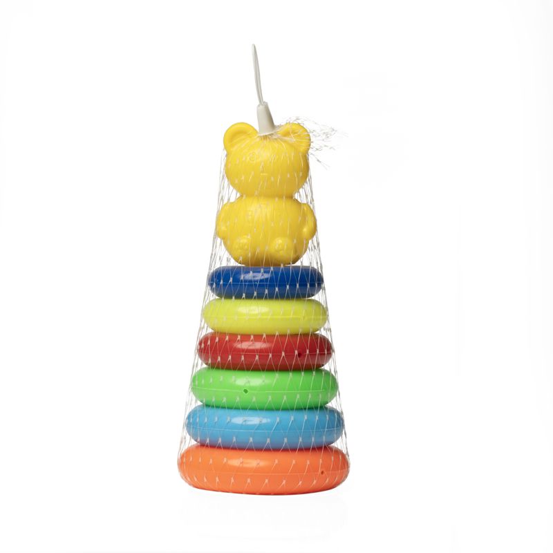 حلقه هوش خرسی کوچک از شش حلقه به رنگها و اندازههای مختلف، یک خرس کوچولو و یک پایهی مخروطی تشکیل شده است. هدف این است که کودک با بازی و جستجوی ذهنی و از طریق آزمون و خطا با مفاهیم اندازه، تطبیق و دستهبندی آشنا شود. رنگهای درخشان حلقهها به شناخت رنگها کمک میکند. برای شروع اصلاً مهم نیست که کودک ترتیب را رعایت کند، اما در نهایت کودک باید بتواند همهی حلقهها را به ترتیب بچیند و از این راه قدرت حل مسئله را در خود تقویت کند. حلقه هوش خرسی در دو اندازهی متوسط و بزرگ هم تولید و عرضه میشود.