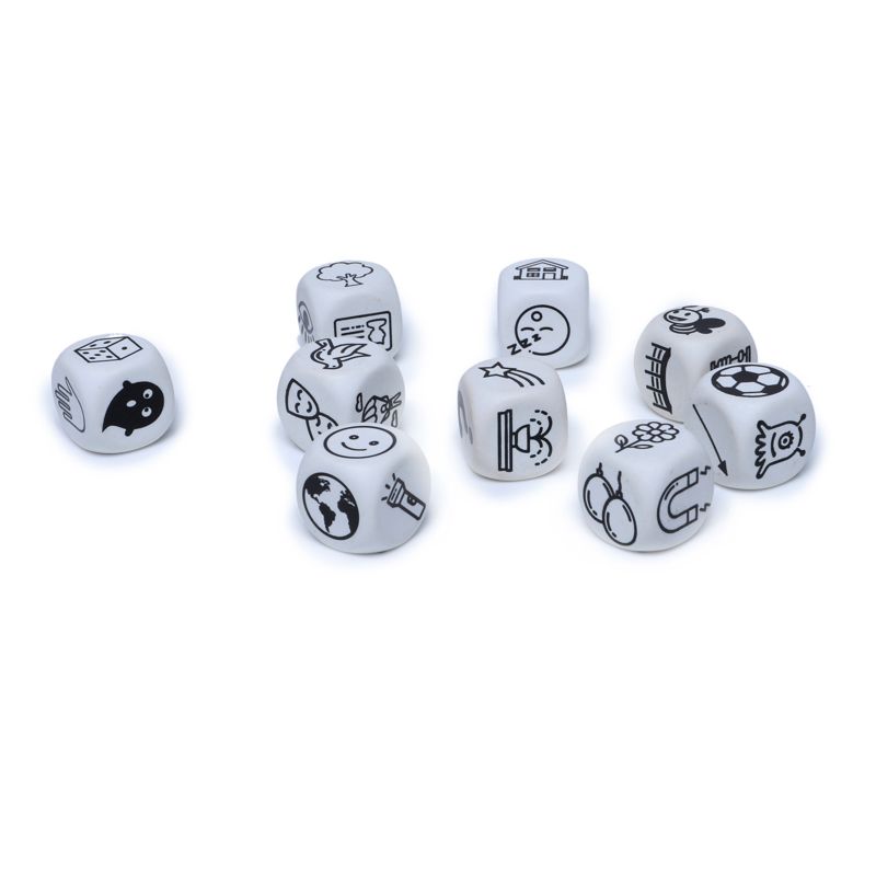 مکعبهای قصهگویی مجموعهای شامل ۹ تاس است که روی هر وجه از آنها تصویر متفاوتی نقش بسته است. با کمک این ۹ تاس و با ورد جادویی «یکی بود، یکی نبود …» دریچهای از دنیایی پر از تخیل و خلاقیت به روی شما گشوده میشود. با مکعبهای قصهگویی میتوان به روشهای بسیار گوناگونی بازی کرد و بر توانش زبانی، دایرهی واژگان، قدرت قصهگویی و بیان احساسات خود افزود. این بازی علاوه بر ایجاد فرصتی شاد و مفرح برای دورهمیهای خانوادگی، میتواند در کلاسهای انشاء، نقاشی و همچنین جلسات درمانی اختلالات گفتاری و عاطفی مورد استفاده قرار گیرد.