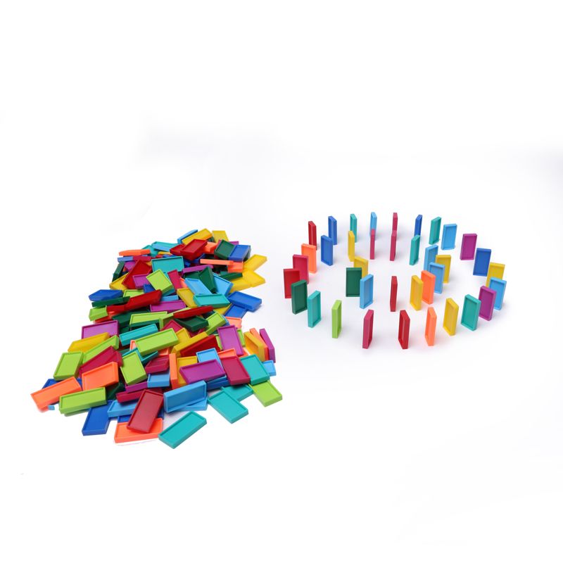 چیدن قطعات دومینو و در نهایت شاهد آن بودن که چگونه با فرو افتادن یکی بقیهی قطعات یکی بعد از دیگری زنجیروار فرو میافتند، از بازیها و تفریحات جذاب و در عین حال بسیار آموزنده برای همهی گروههای سنی است. دومینو ۲۰۰ قطعه لبخند، همانطور که از نامش پیداست، حاوی ۲۰۰ قطعه دومینوی پلاستیکی رنگارنگ است که میتوان با استفاده از آنها به صورت فردی یا گروهی چیدمانهای متنوعی ایجاد کرد و علاوه بر افزایش چشمگیر دقت و تمرکز و همچنین صبر و بردباری، بر روحیهی جمعی و حس همکاری در بین کودکان و نوجوانان افزود. دومینو در بستهبندی جعبهای ۱۰۰ قطعهای و به صورت فلهای در بستههای ۱۰۰۰ تایی نیز عرضه میشود.