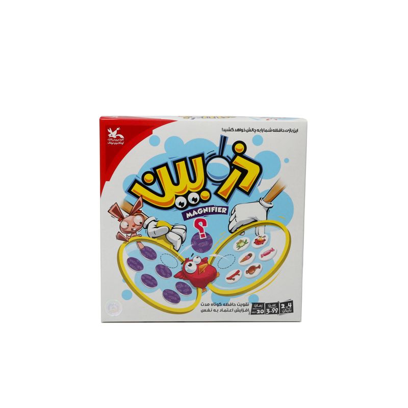 ذرهبین یک بازی شیرین و ساده و در عین حال بسیار مفید برای تقویت حافظهی دیداری است. این بازی به گونهای طراحی شده است که گروههای سنی مختلف از ۳ سال به بالا میتوانند با هر تعداد بازیکن آن را بازی کنند. بازی به این صورت انجام میشود که تعدادی تصویر داخل ذرهبین قرار میگیرد و همهی بازیکنان به مدت ۱۰ ثانیه به آنها نگاه میکنند. سپس ذرهبین برگردانده و به خوبی تکان داده میشود تا تصاویر جابجا شوند. بعد یکی از تصویرها به پشت، طوری که تصویر آن معلوم نباشد، از شیار پایین ذرهبین خارج و ذرهبین برگردانده میشود. کسی که زودتر از همه تشخیص دهد چه تصویری خارج شده، برندهی بازی است.