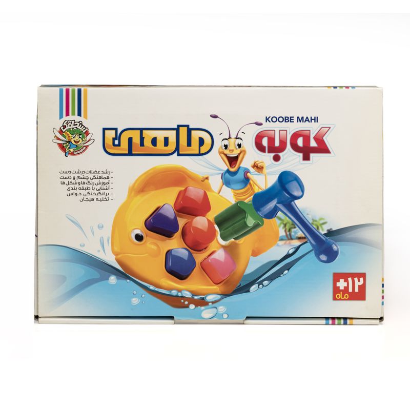کوبه ماهی ترکیبی است از یک بازی دانش محور برای شناخت رنگها و شکلها، پایهریزی قدرت حل مسئله و همچنین یک بازی مهارت محور برای تقویت ماهیچههای بزرگ و ظریف دست. این بازی شامل یک صفحهی بازی به شکل ماهی، ۶ قطعهی پلاستیکی به شکلهای متفاوت و با رنگهای زیبا و درخشان و یک چکش پلاستیکی کاملاً ایمن است. کیفیت بالای مواد اولیه و زیبایی محصول نهایی از ویژگیهای قابل توجه کوبه ماهی به شمار میرود. وجود چشم متحرک بر روی صفحهی ماهی شکل، باعث ترغیب بیشتر کودک به بازی میشود.