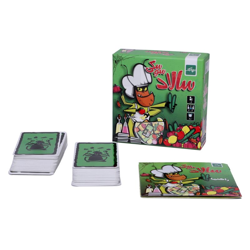 میخوایم سالاد درست کنیم؛ سالاد چی؟ یه سالاد شیرازی خوشمزه با گوجه و خیار و پیاز و البته لیمو! هر بازیکن اسم کارتی رو که بازی میکنه با صدای بلند میگه و کسی که زودتر کارتهاش رو تموم کنه برنده است. نکته اینجاست که اسم هیچ کارتی نباید تکرار بشه و در ضمن باید مراقب کارتهای ممنوعه هم باشید. هر اشتباه، توپوق زدن یا مکث بیشتر از سه ثانیه باعث میشه همهی کارتهای رو شده به دستتون اضافه بشه. با انجام این بازی دقت و تمرکزتون بالا میره، قدرت بیان شما تقویت میشه و تازه ... کلی هم خوش میگذره.