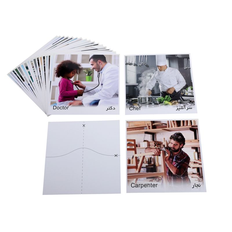 شناخت مشاغل و آشنایی با کسب و کارهای مختلف از مراحل مهم رشد شناختی کودکان محسوب میشود. مجموعه کارت پازل آموزشی مشاغل با همین هدف تهیه شده است. بهتر است علاوه بر از استفاده از کارتها برای آشنایی با نام مشاغل به زبان فارسی یا انگلیسی، نقش شغلهای مختلف را با کودک خود بازی کنید و در مورد جنبههای مختلف هر شغل با او گفتگو کنید. در فرصتهای مناسب نیز همراه با فرزند خود به کسب و کارها سر بزنید تا به طور عینی و از نزدیک با آنها آشنا شوند. کارت پازلهای آموزشی از این ویژگی هم برخوردارند که با قیچی کردن آنها از روی خطوط پشت کارت، به صورت پازلهای دو تکه و چهار تکه مورد استفاده قرار گیرند.