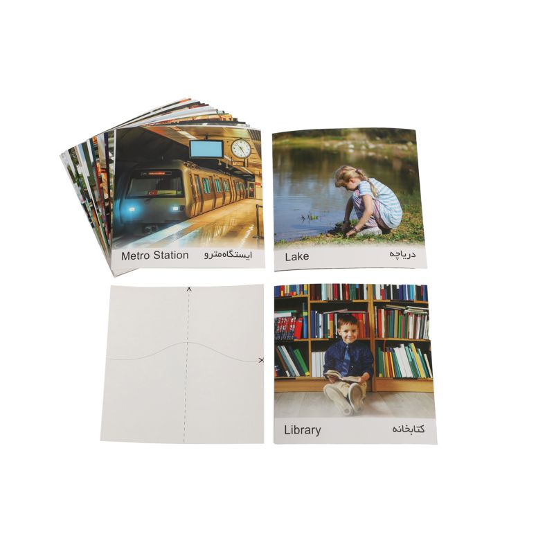 بهترین روش برای شناخت مکانهای مختلف این است که کودک را به آن مکان برده و امکان شناخت همه جانبهی آن را برای کودک فراهم کرد. اما در عالم واقع برای مکانهای گوناگون چنین امری تقریباً ناشدنی است. کارت پازل آموزشی اماکن این امکان را فراهم میسازد که در مورد مکانهای مختلف با کودک به گفتگو پرداخت و در حد امکان آنها را با جاهای مختلف آشنا کرد. در این کارتها نام اماکن به دو زبان فارسی و انگلیسی آورده شده و علاوه بر آن امکان قیچی کردن کارتها و تبدیلشان به پازلهای دو قطعه و چهار قطعه وجود دارد.
