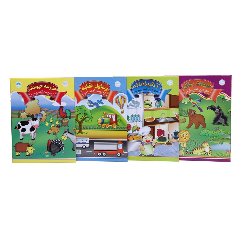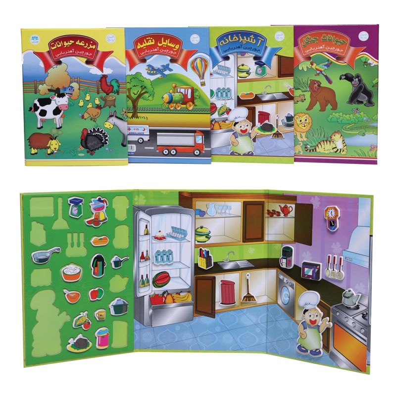 جورچینهای آهنربایی به دلیل دارا بودن خاصیت مغناطیسی، برای کودکان از جذابیت خاصی برخوردار هستند. در جورچینهای آهنربایی کتابی کودک با جابجا کردن قطعات بر روی صفحه علاوه بر تقویت مهارتهای مختلف، از جمله هماهنگی چشم و دست و مهارتهای حرکتی ظریف، با کمک بزرگتر میتواند به داستانسرایی بپردازد و در مورد وسایل نقلیه، وسایل آشپزخانه، حیوانات مزرعه یا حیوانات جنگل مطالبی بیاموزد. در هر چهار مدل نام قطعات به زبان انگلیسی نوشته شده است تا بتوان از این وسیله برای زبانآموزی هم استفاده کرد. در عین حال، جایگذاری قطعات در محل خاصشان قدرت حل مسئله را نیز در کودکان تقویت میکند.