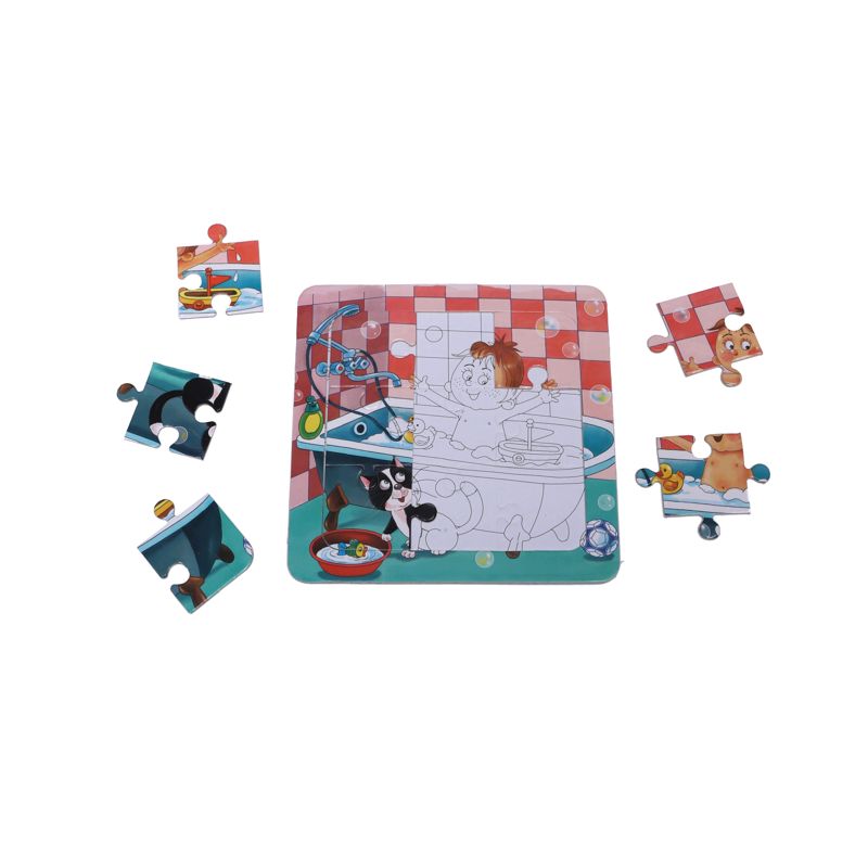 پازلها یا جورچینها از آن دسته وسایل سرگرمی هستند که علاوه بر فواید زیادی که برای آنها برمیشمارند، طیف وسیعی از گروههای سنی را هم در بر میگیرند. نکتهی مهم در انتخاب پازل برای فرد تعداد قطعات و اندازهی قطعات آن است. هر یک از پازلهای پسر و پیشی دارای ۹ قطعه است و برای کودکانی مناسب است که قبلاً پازلهای دو قطعهای، چهار قطعهای و یا شش قطعهای را به راحتی انجام داده باشند. هر پازل نشانگر یکی از فعالیتهای روزمرهای است که کودکان انجام میدهند، مثل غذا خوردن، بازی کردن، حمام کردن و غیره. هنگام درست کردن پازل میتوان در مورد هر فعالیت با کودکان گفتگو و مواردی که باید رعایت شود را گوشزد کرد.