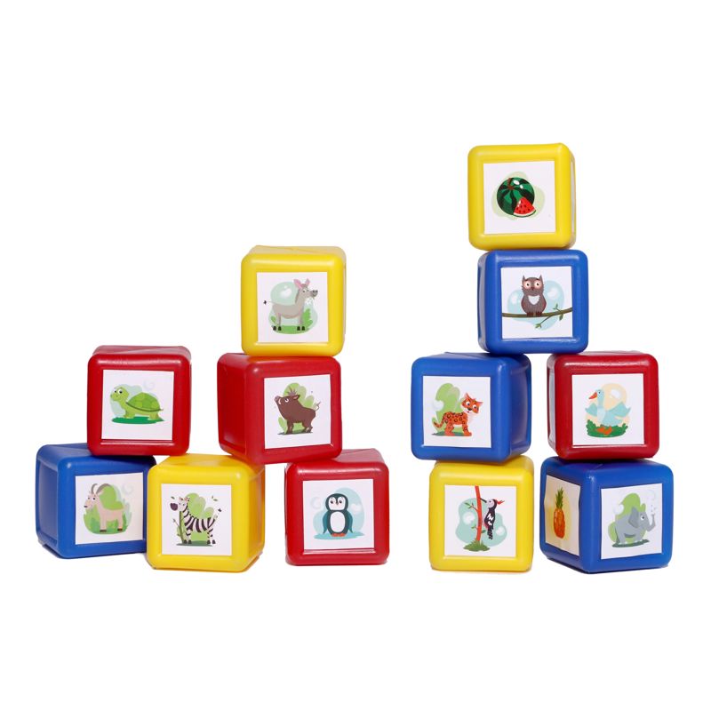 این مجموعهی جذاب و آموزشی شامل ۱۲ مکعب پلاستیکی در سه رنگ اصلی قرمز، آبی و زرد است. تعدادی برچسب نیز از میوهها، حیوانات اهلی، حیوانات وحشی و پرندگان وجود دارد که میتوان آنها را روی مکعبها چسباند و بازیهای فراوانی را برای آموزش مفاهیم گوناگون با کودکان از سن ۸ ماهگی تا ۳ سالگی انجام داد. لبههای گرد این مکعبها که از پلاستیک با کیفیت ساخته شدهاند، برای کودکان کاملاً بیخطر هستند. تقویت حواس، تقویت مهارتهای شناختی، آشنایی با دنیای اطراف و توسعهی زبان از فواید بازی با این مجموعه به شمار میرود.از مکعبهای رنگی کوچک میتوان در خانه، در مهد کودک و خانههای بازی استفاده کرد و برای هدیه دادن در مناسبتهای مختلف ایدهآل هستند.