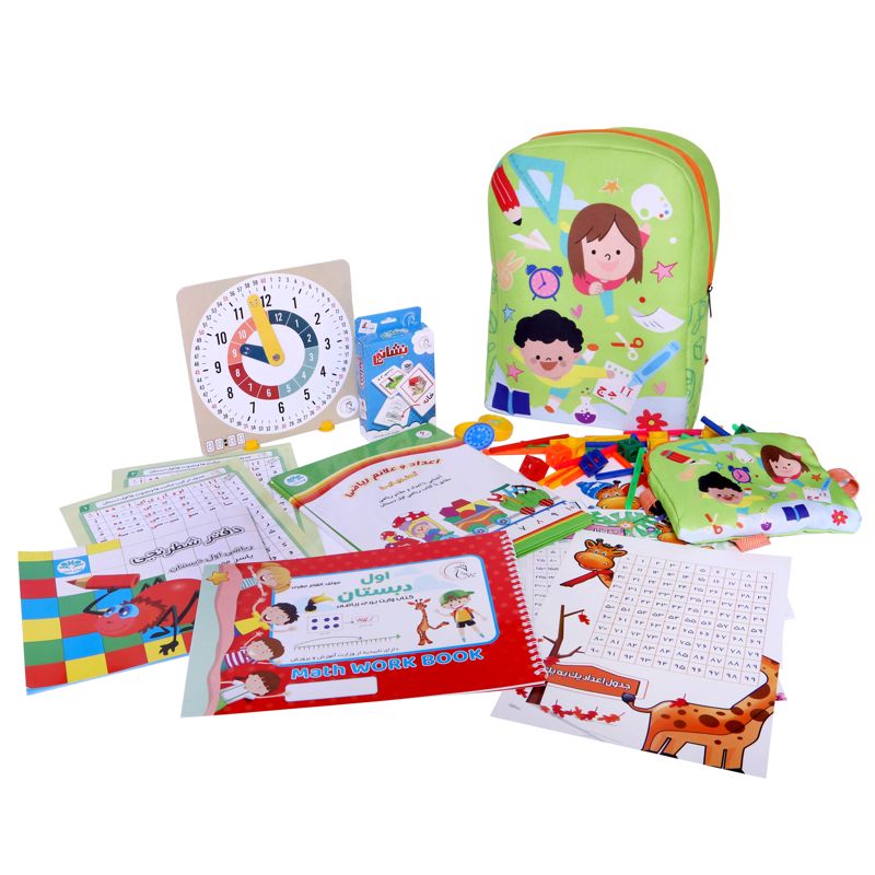 کولهی کلاس اولی یک کیف شیک و بادوام با روکش مخملین است که در آن هر چیزی که برای پایهی اول ابتدایی لازم است، پیدا میشود: کتاب وایتبردی برای انجام تمرینهای ریاضی، دفتر شطرنجی، فلش کارت نشانهها، ساعت دانشآموز و یه ساعت مُهر دار برای یادگیری سریع و راحت ساعت، جورچین کتابی اعداد و علائم ریاضی آهنربایی، یک جعبه چینه ۲۰ تایی و یک جعبه چوب خط ۶۰ تایی، جدول ترکیب صامت و مصوتها، جدول اعداد سه برگی و یک کیف کمری خوشگل که دانشآموز میتواند وسایل دم دستی خود را در آن بگذارد. کوله و کیف کمری حتی با ماشین لباسشویی نیز قابل شستشو هستند و در ضمن کوله پشتی و کیف کمری را میتوان جداگانه و به صورت تکی هم تهیه کرد.