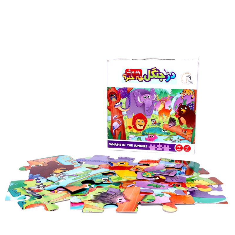 پازلها از جمله بازیهایی هستند که علاوه بر سرگرم کردن کودکان مهارتهای بسیاری را در آنان تقویت میکنند و از جمله آنها را با جهانی که در آن زندگی میکنند، آشنا میسازند. پازل بزرگ در جنگل چه خبر یک پازل با ۲۴ قطعه بزرگ است که در نهایت یک تابلوی ۷۰×۵۰ سانتیمتری از حیوانات مختلف و متنوع جنگل میسازد. کیفیت بالای قطعات و همچنین طراحی و رنگآمیزی بسیار زیبای این پازل از مزیتهای آن به شمار میرود.
