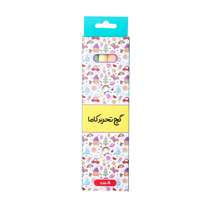 این محصول شامل ۸ قطعه گچ بسیار با کیفیت برای استفاده روی تخته سیاه یا هر سطح مناسب دیگر است. اندازهی گچها به طول ۸ سانتیمتر و به قطر ۱۲ میلیمتر است. رنگ گچها آبی، سبز، زرد، نارنجی، صورتی و سفید را شامل میشود که از رنگ سفید و یک رنگ مهم دیگر دو قطعه وجود دارد. گچ کاما علاوه بر بستهی ۸ عددی به صورت ۱۲ عددی نیز عرضه میشود.