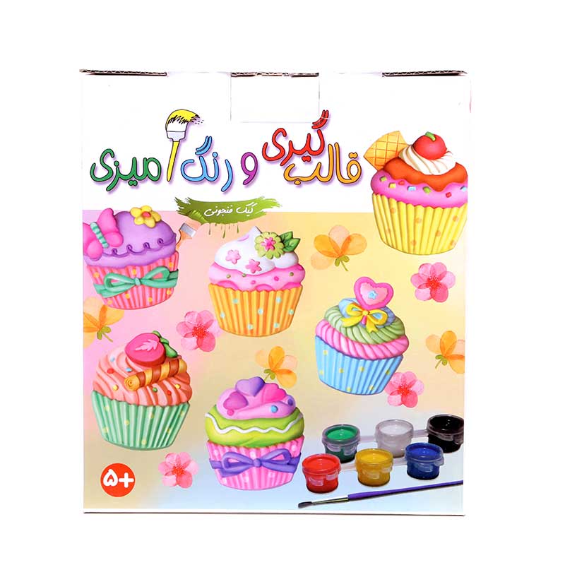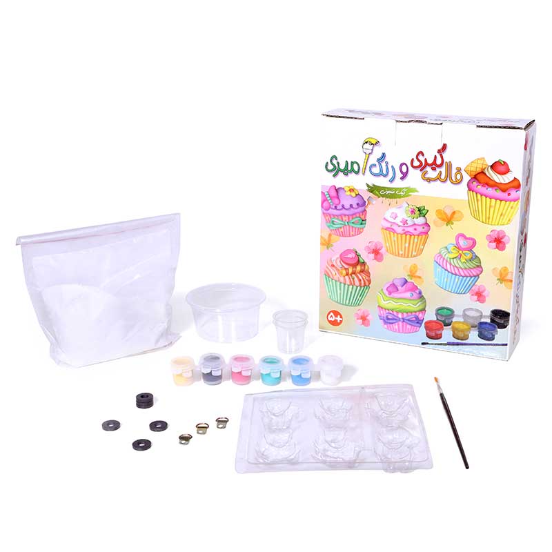 کیکهای فنجانی از جمله خوراکیهایی هستند که بخصوص به خاطر شکلها و رنگهای زیبا و متنوع به شدت مورد توجه کودکان قرار میگیرند. مجموعهی قالبگیری و رنگآمیزی کیک فنجونی این فرصت را ایجاد میکند که کودکان بتوانند کیکهای فنجانی متنوعی بسازند و با این کار ضمن لذت بردن از عمل ساختن، بر خلاقیت، اعتماد به نفس و صبوری خود بیفزایند. این مجموعه شامل پودر مجسمهسازی، دو پیمانه، یک کاسه برای درست کردن خمیر، قالب برای هر بار درست کردن ۶ کیک فنجانی، شش رنگ اصلی گواش، یک قلم مو، شش قطعه آهنربای حلقهای و دفترچهی راهنماست. کودکان میتوانند از ۵ سالگی، تحت نظارت بزرگترها، خمیر مجسمهسازی را آماده و قالبگیری و پس از اضافه کردن آهنربا، در نهایت آنها را به سلیقهی خود رنگآمیزی کنند. از کیکهای آماده شده میتوان برای تزئین روی یخچال یا هر سطح فلزی دیگر یا به صورت بخشی از کولاژ استفاده کرد.